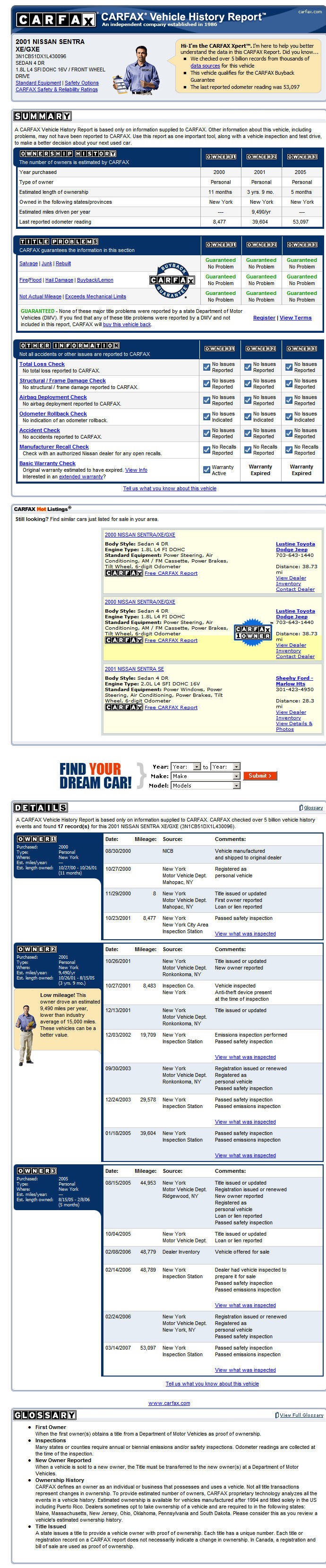 A CARFAX Vehicle History Report is based only on information supplied to CARFAX. CARFAX checked over 5 billion vehicle history events and found 23 record(s)for this 2003 NISSAN MAXIMA GLE/GXE/SE (JN1DA31D23T504931).