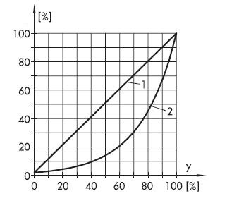 Equal Percentage characteristic can be identified by equal increments of X axis that yield equal percentage increments of the y-axis. Whereas, in a linear characteristic, equal increments of x-axis yield equal increments in the y-axis. Linear curve is simple as equation is just y=x. I need help for the equation for equal percentage curve.
