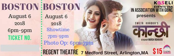 Koseli Events USA in Association with GBNC (Greater Boston Nepali Community) presents a Special BOSTON PREMIERE of Nepali Movie-"कान्छी"- with SWETA KHADKA herself. Date: August 6, 2018. 6pm-9pm @ REGENT Theatre, Arlington, MA. A Social Drama featuring the MegaStar Dayahang Rai and the most liked Nepali actress Sweta Khadka.DATE: August 6, 2018. Showtime: 6pm-9pm VENUE: REGENT Theatre, Arlington, MA.Attraction: Photo Op with Sweta Khadka (6pm-7pm) by Bishal Suwal PhotographyTrailer: https://youtu.be/VT3ijTZLFUgTitle Song: https://youtu.be/iPCQmI5yTGECast: Dayahang Rai, Sweta Khadka, Kameshwor Chaurasia, Nir ShahDirector: Akash Adhikari