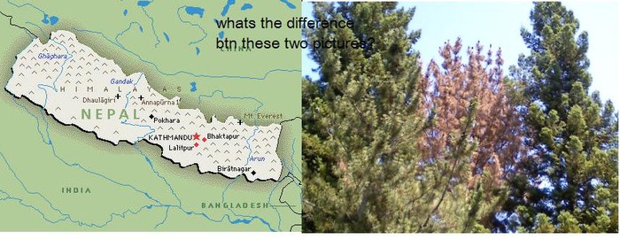 आज म बारान्दा मा बसेर नियलदै थिय , तर फरक आँखा ले , यो सल्लो को रुख लाई। वोइलिये को यो रुख भित्र मैले नेपाल देखे। वरपर का यि दुबइ रुख हरु हराभरा देखिन्थे, अनी प्रक्रिती का सबै रङ हरु बोकेर बिच्को त्यो रुख लाई जिस्क्याको जस्तो लग्थ्यो । वरपर का रुख का हागाहरु फैलियर बिच्को रुख्लाई चुनौती दिदै थिए। बिचरा त्यो रुख न प्रतिकआर गर्न सक्थ्यो , न हताउन नै!!! यो त बस चुप्चाप थियो, निन्यौरो थियो, जशरी आज नेपाल छ। भारत ले सिमा मिचेर तेत्रो बबआल गर्दा पनि हामी किन चुप चाप ??तर , हामी यो रुख जस्तो चुप्चप हुनुह्हुन्न। नत्र त्यो रुख र हामी म के फरक हुन्छ र !!!!!!